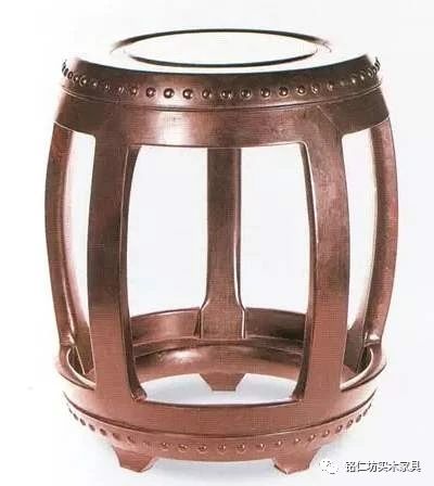 紫檀四開光坐墩,坐墩又稱鼓墩,因為它保留著鼓的形狀;腹部多開圓光,又是藤墩用藤條盤圈所留下的痕跡。此墩圓渾,雖和它的體形有關,但更重要的是完整、囫圇、圓熟、渾成的風貌。